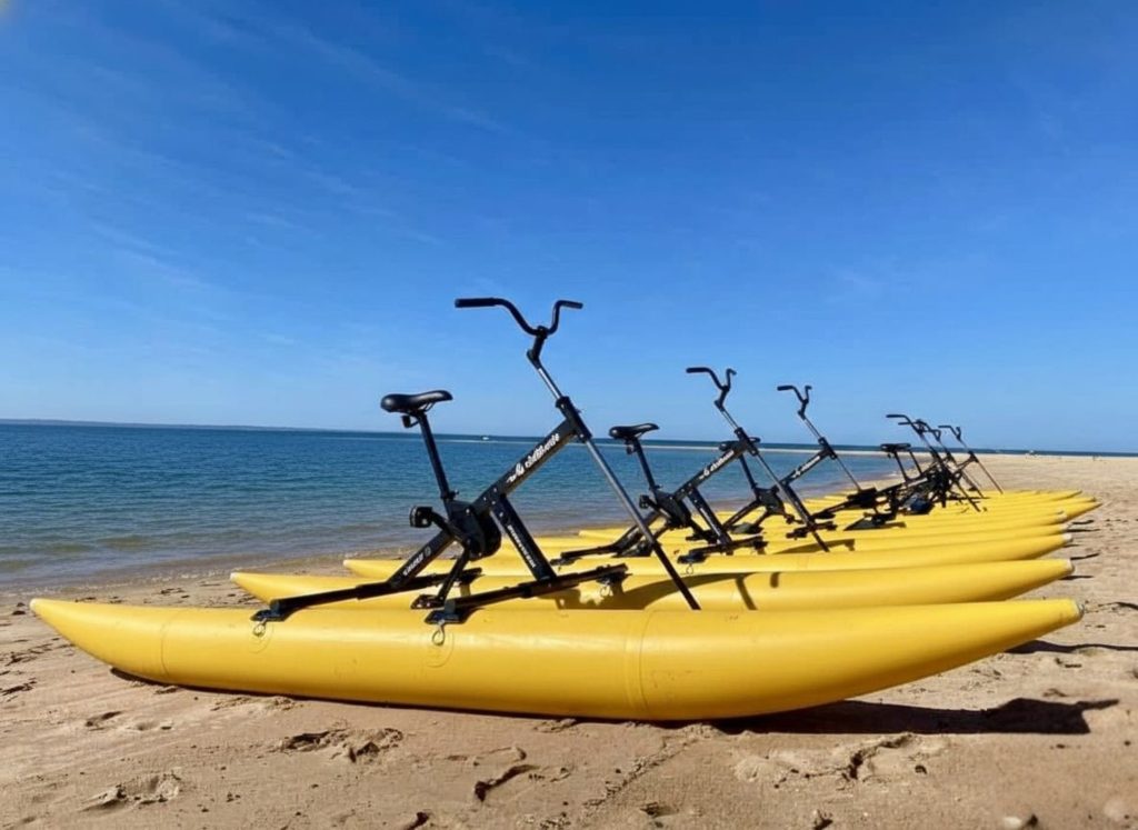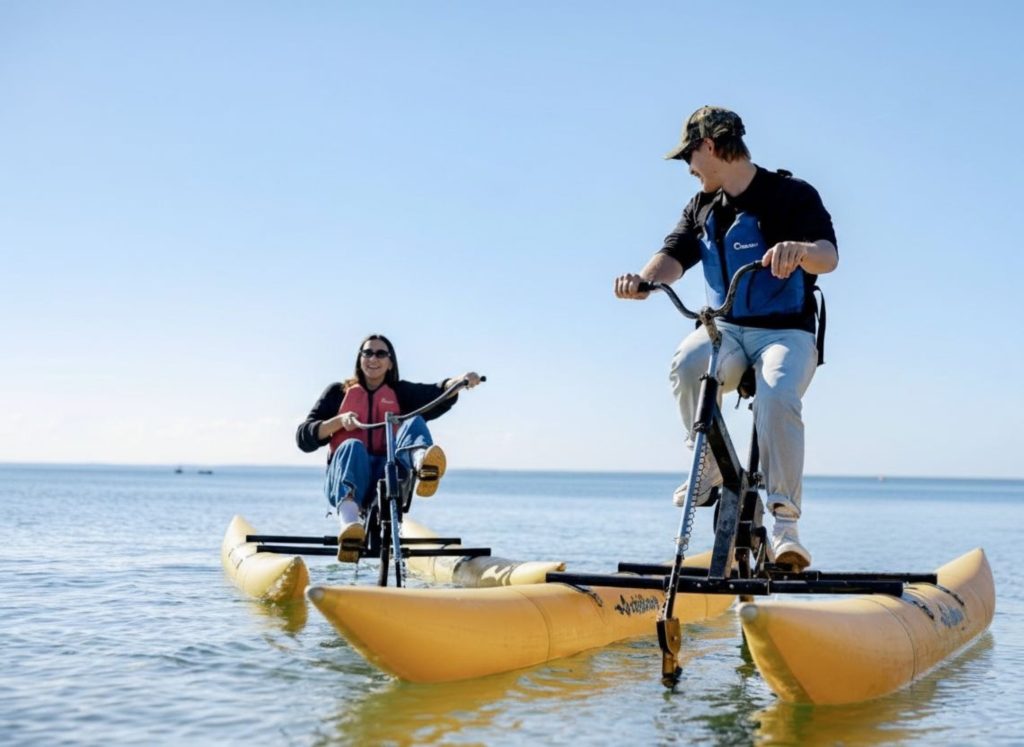 Imagine this: a beautiful sand island, sunlight dancing on the water, and a seafood picnic spread before you. You didn’t just end up there, you rode your water bike across the sparkling lake, and found a place where the lake stretches on forever.